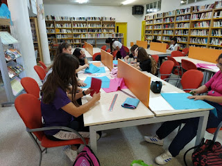 Alumnos de 3º de ESO realizan una cuaderno de trabajo en la biblioteca dirigido por la profesora Julia Ruiz Morcillo. Estos cuadernos de investigación se utilizarán para la confección de herbarios.